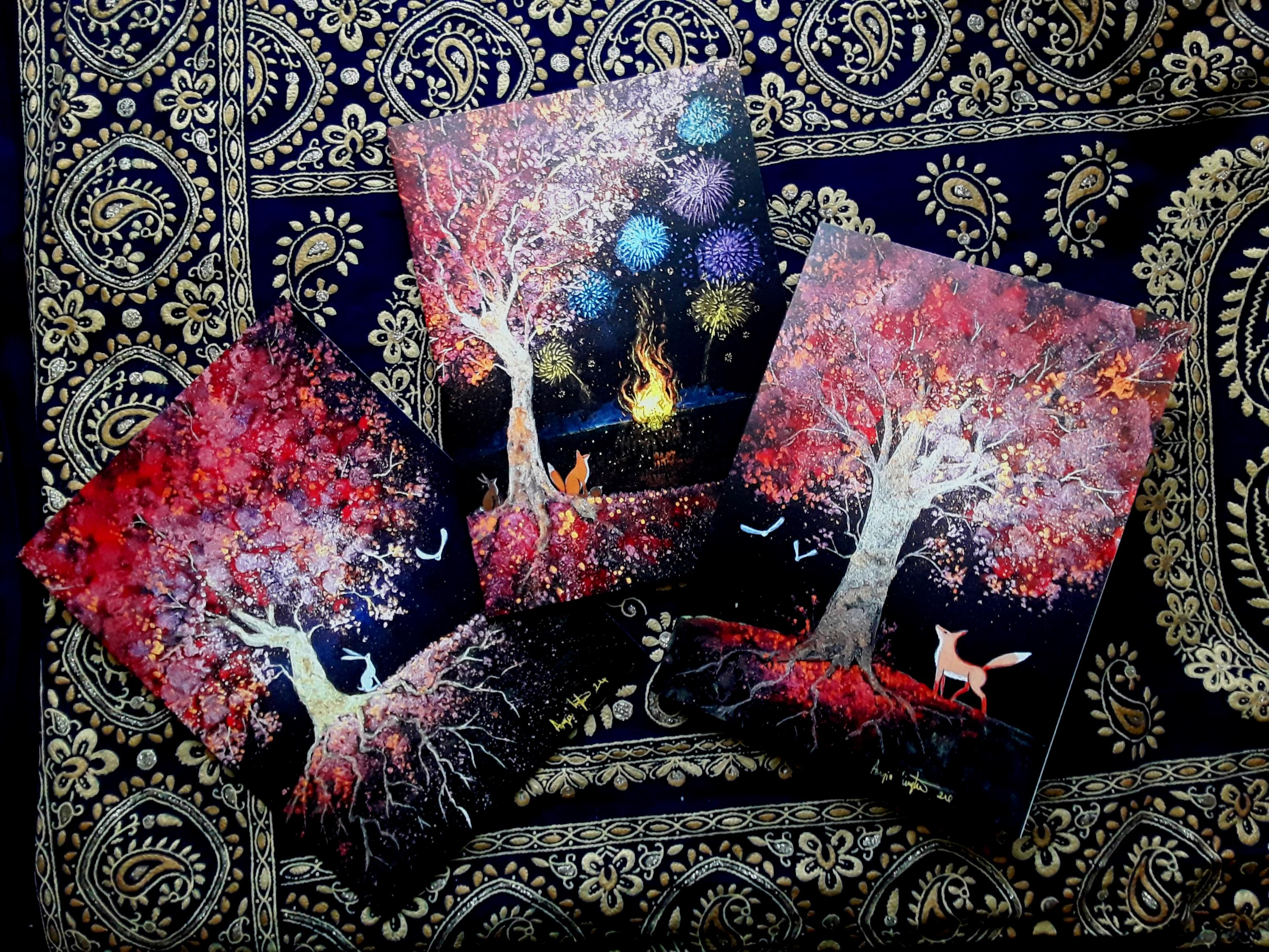 Set of three very high quality cards from my original paintings