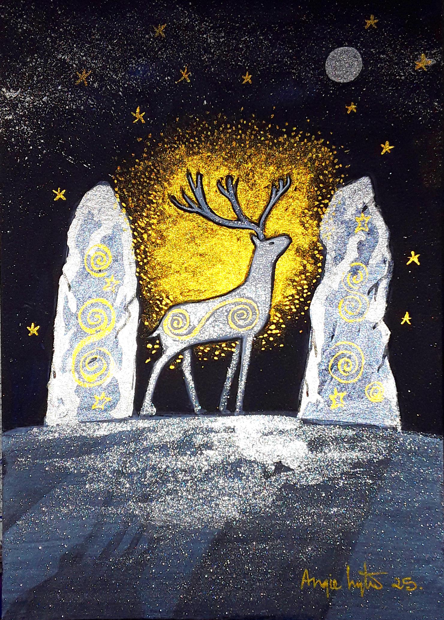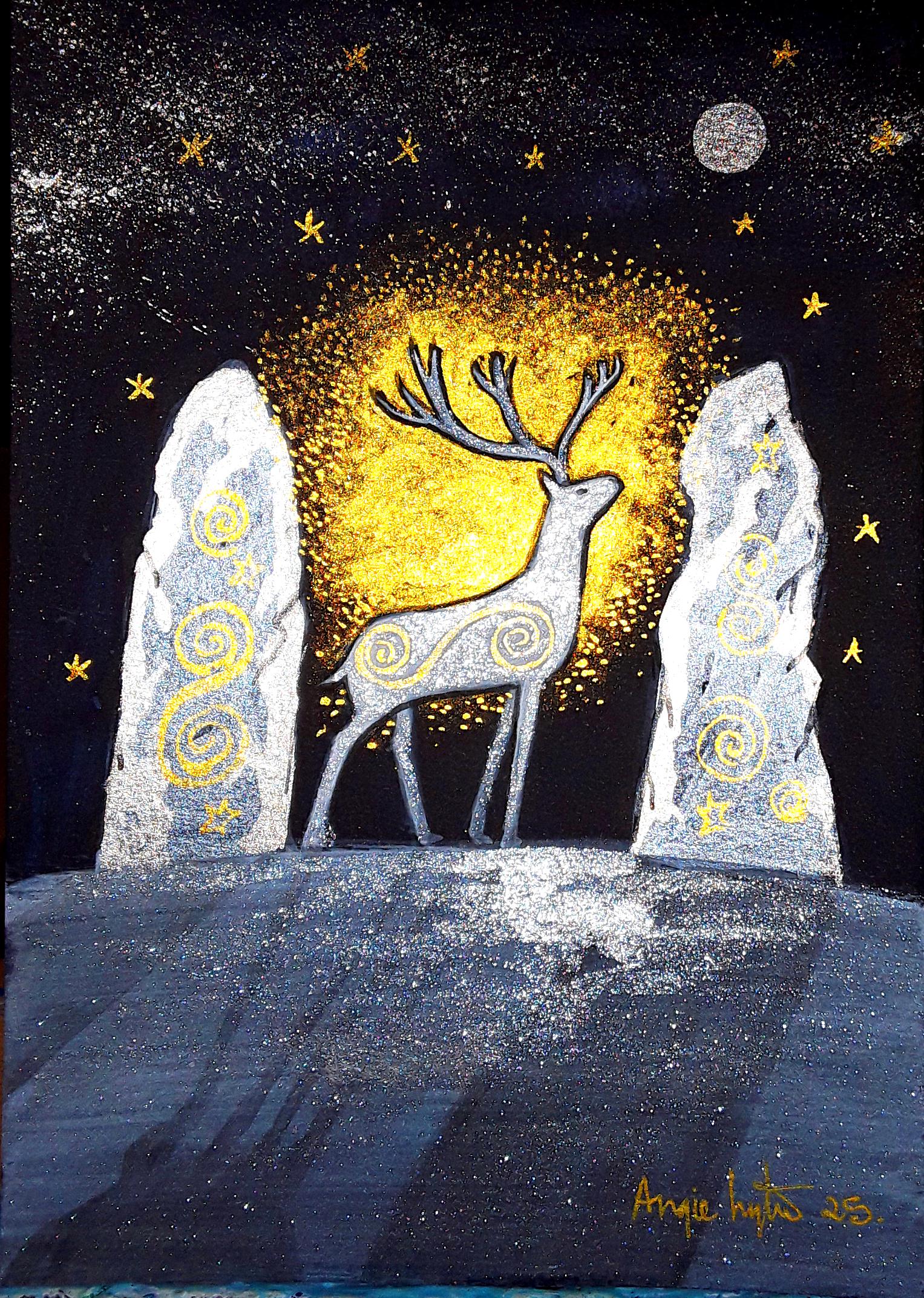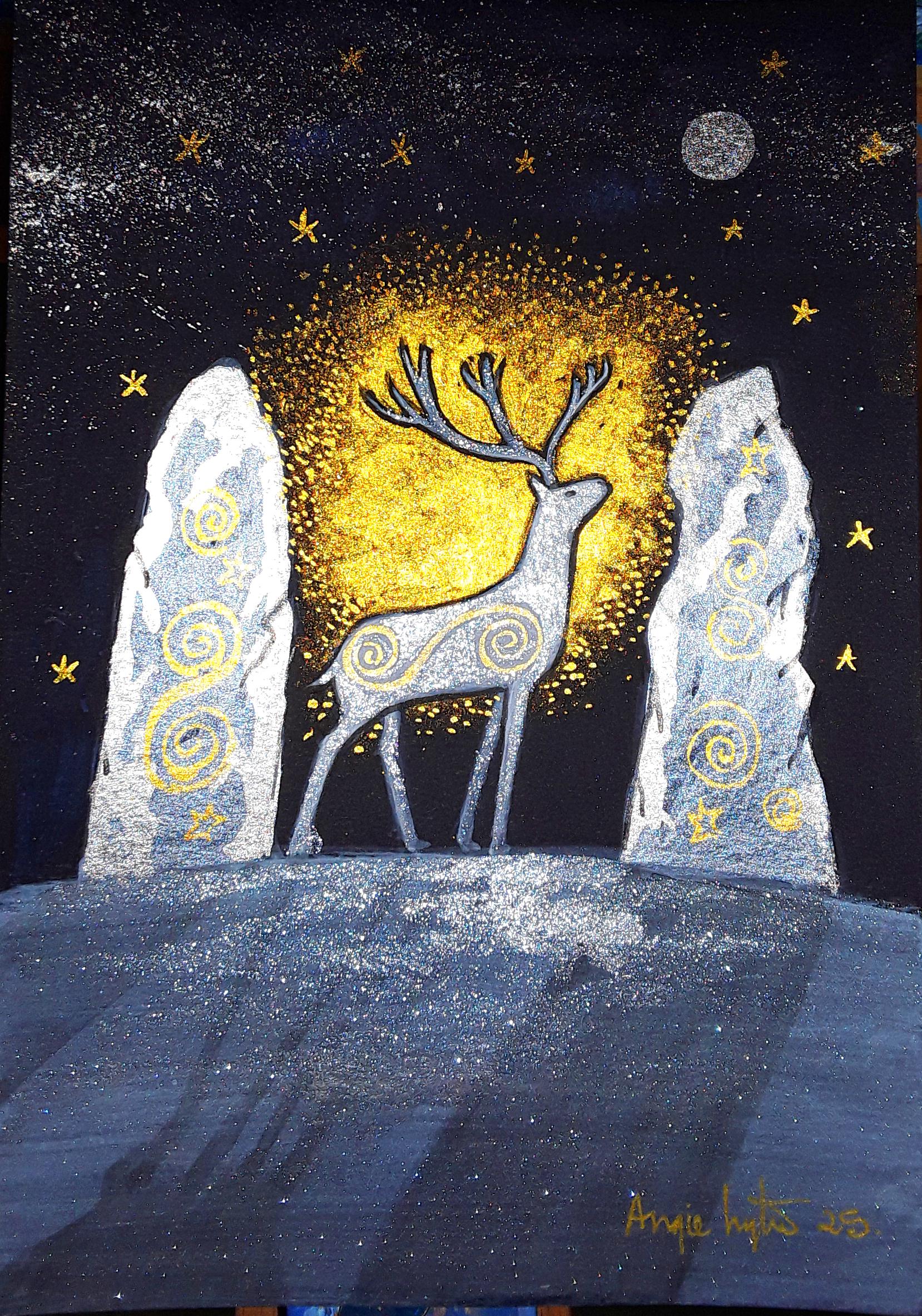 Using metallic watercolours this little original piece sparkles and shines in changing lights.