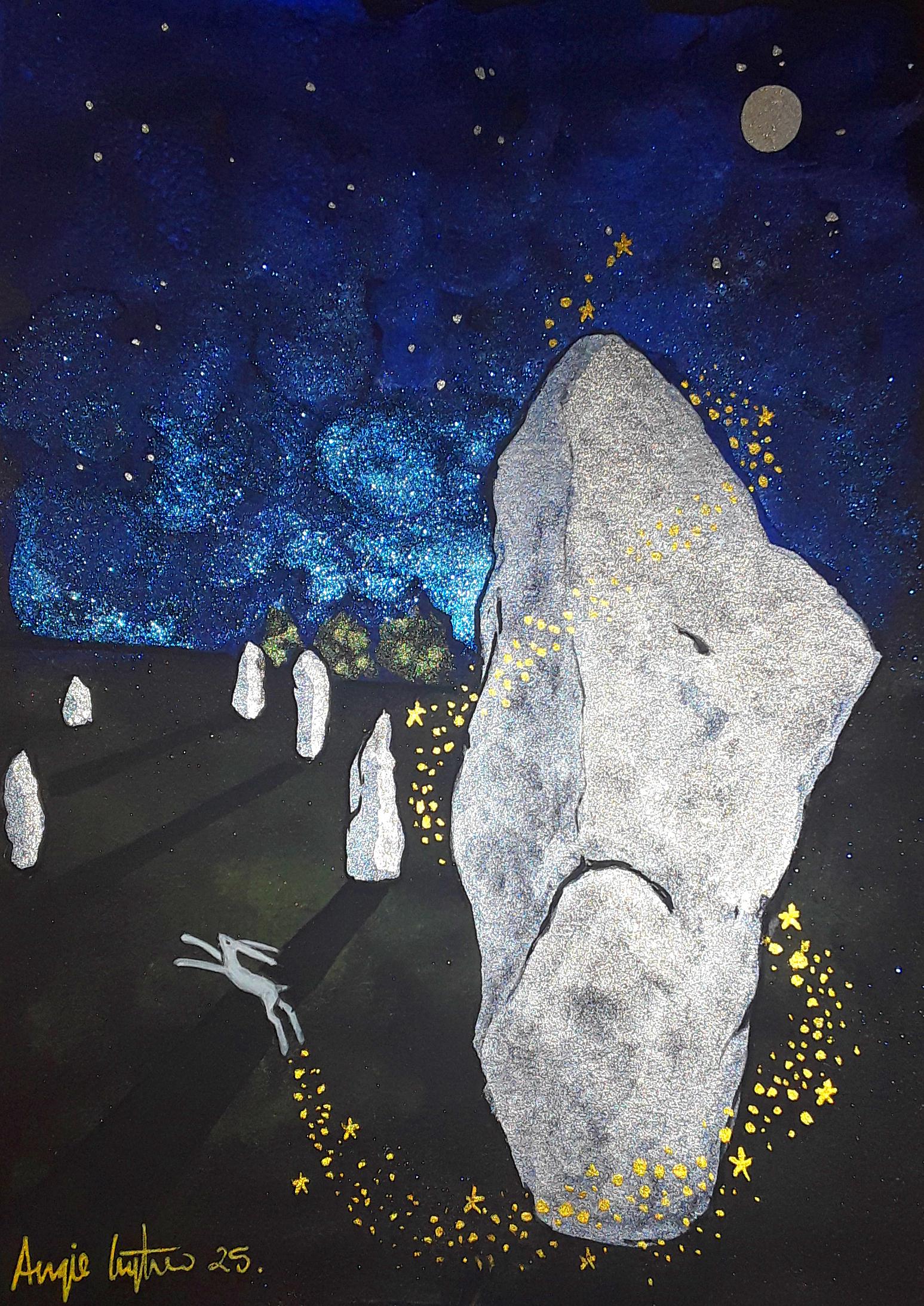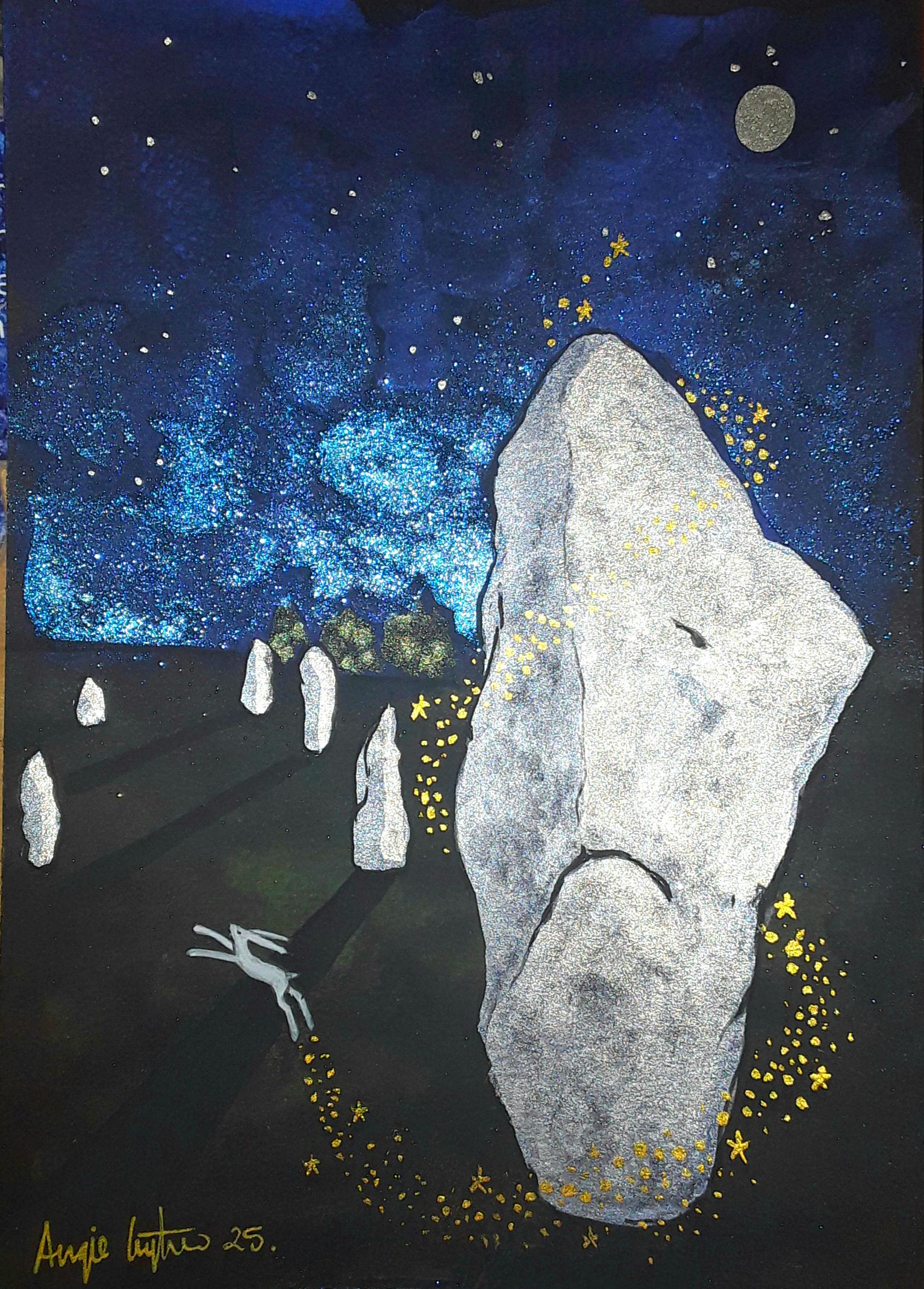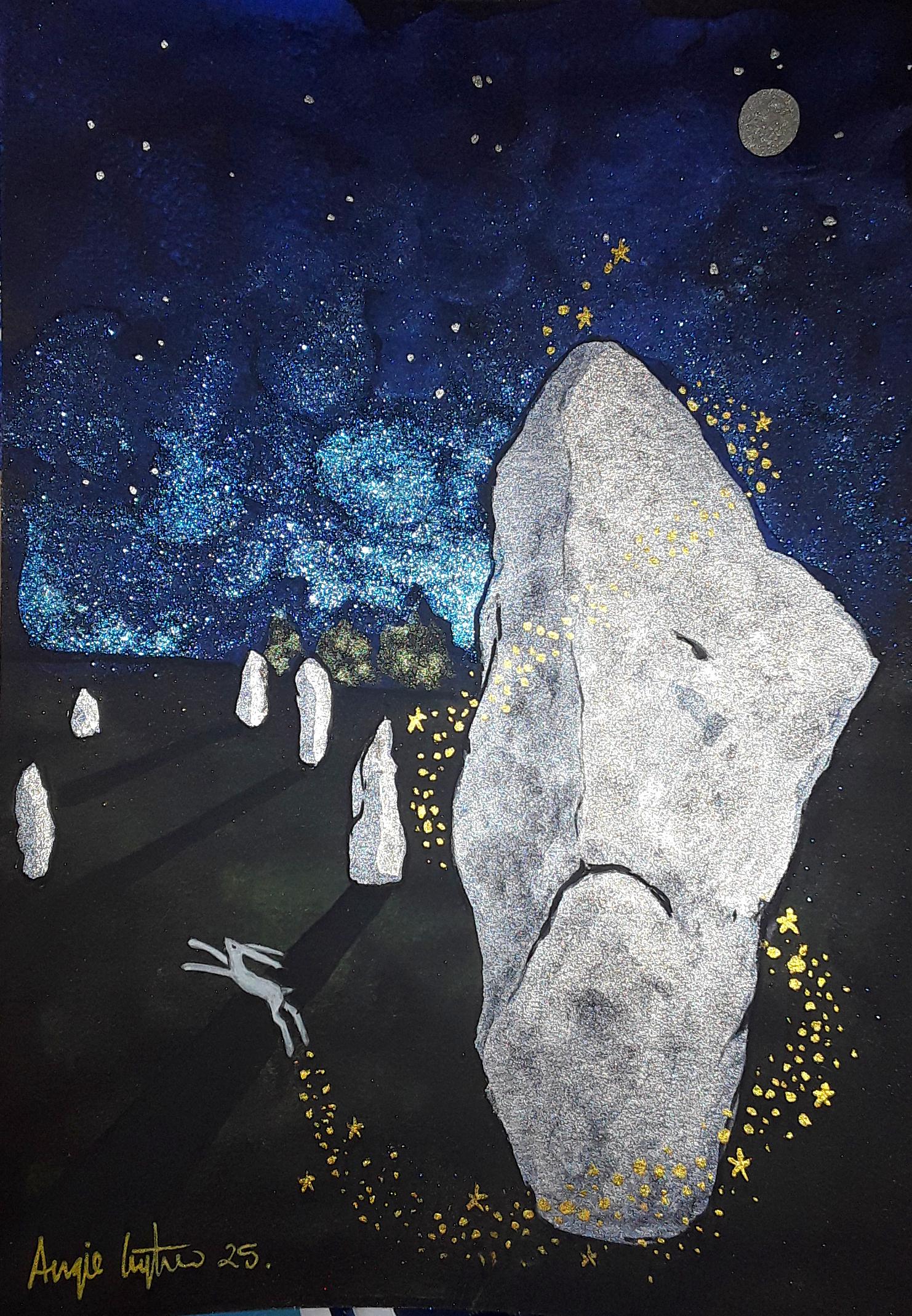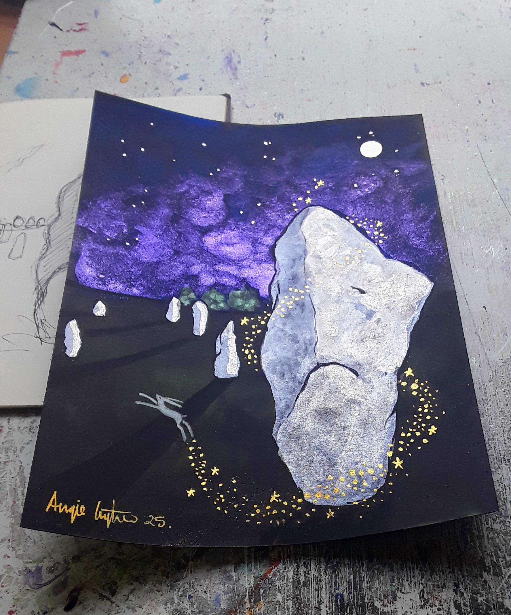 Using metallic watercolours this little original piece sparkles and shines in changing lights.