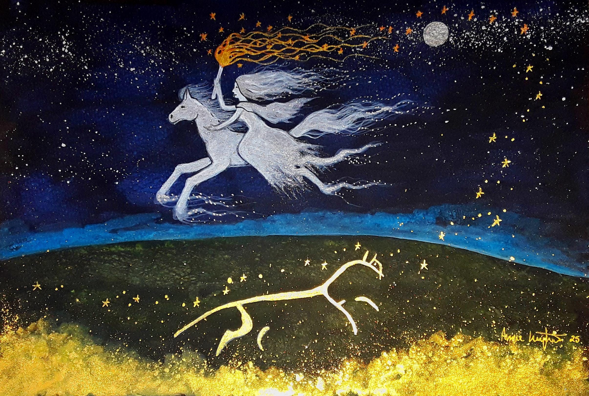 Golden Light of Uffington, Goddess Print, Large A3 Print, Uffington White Horse, A3 Print, Mystical,