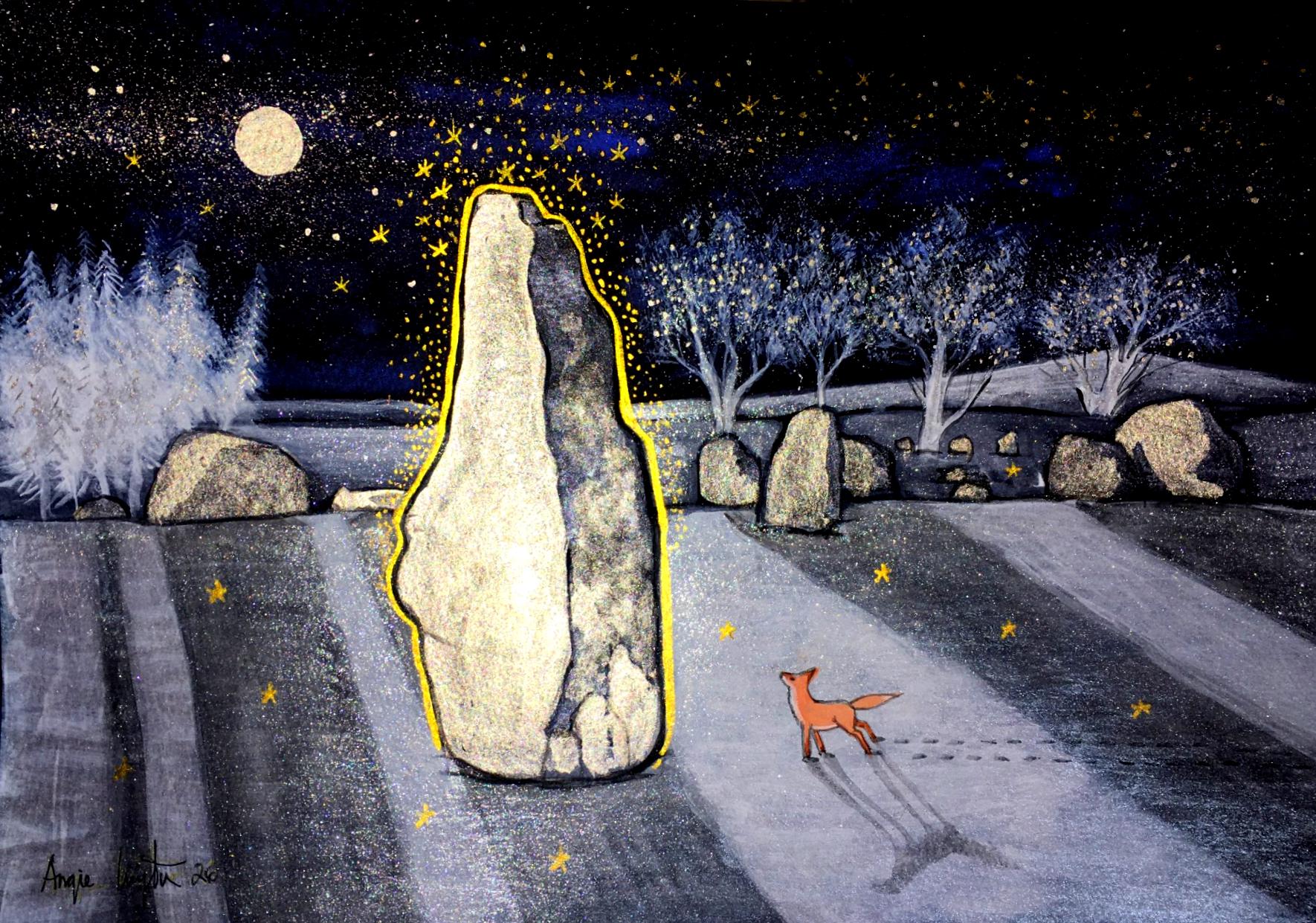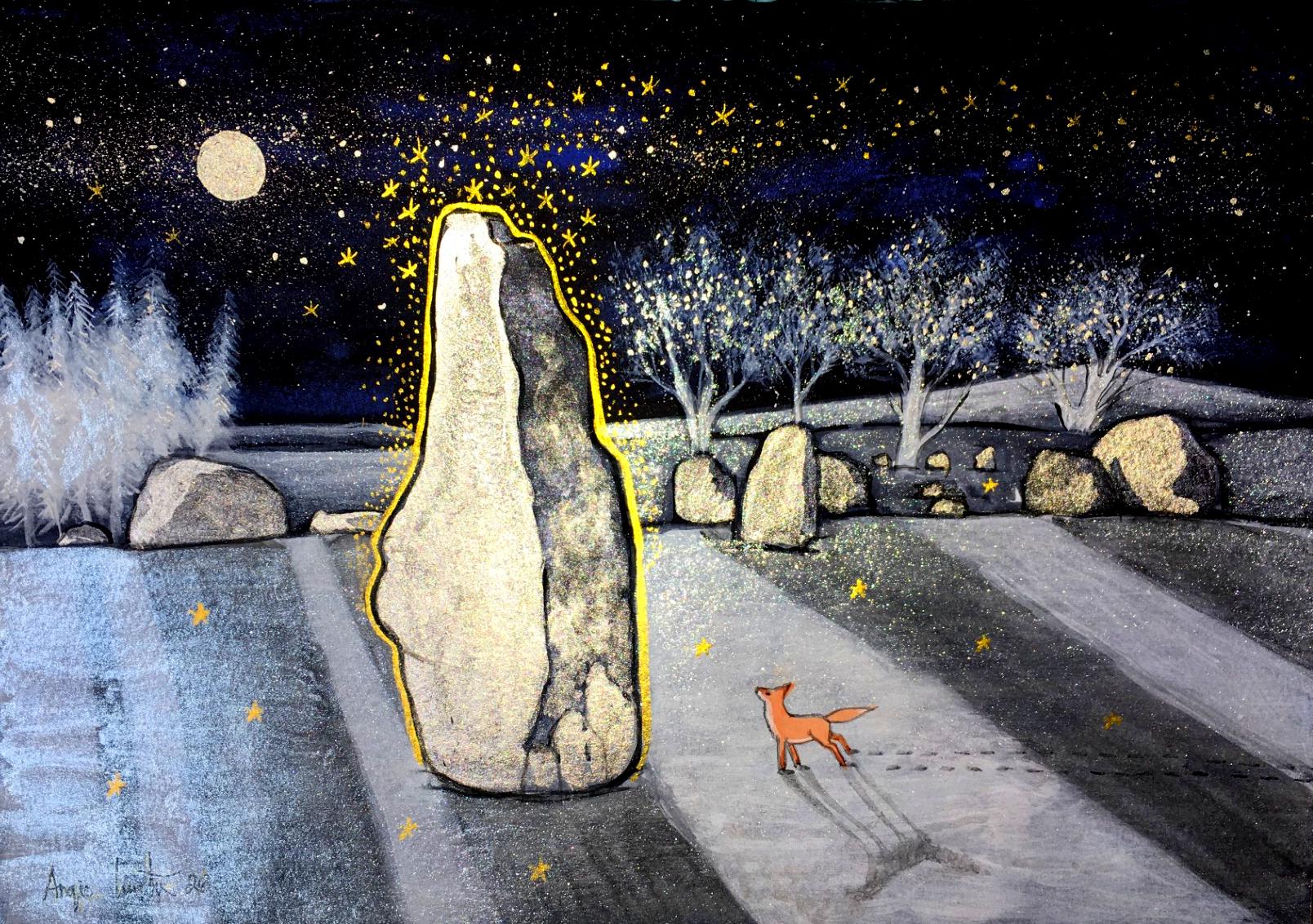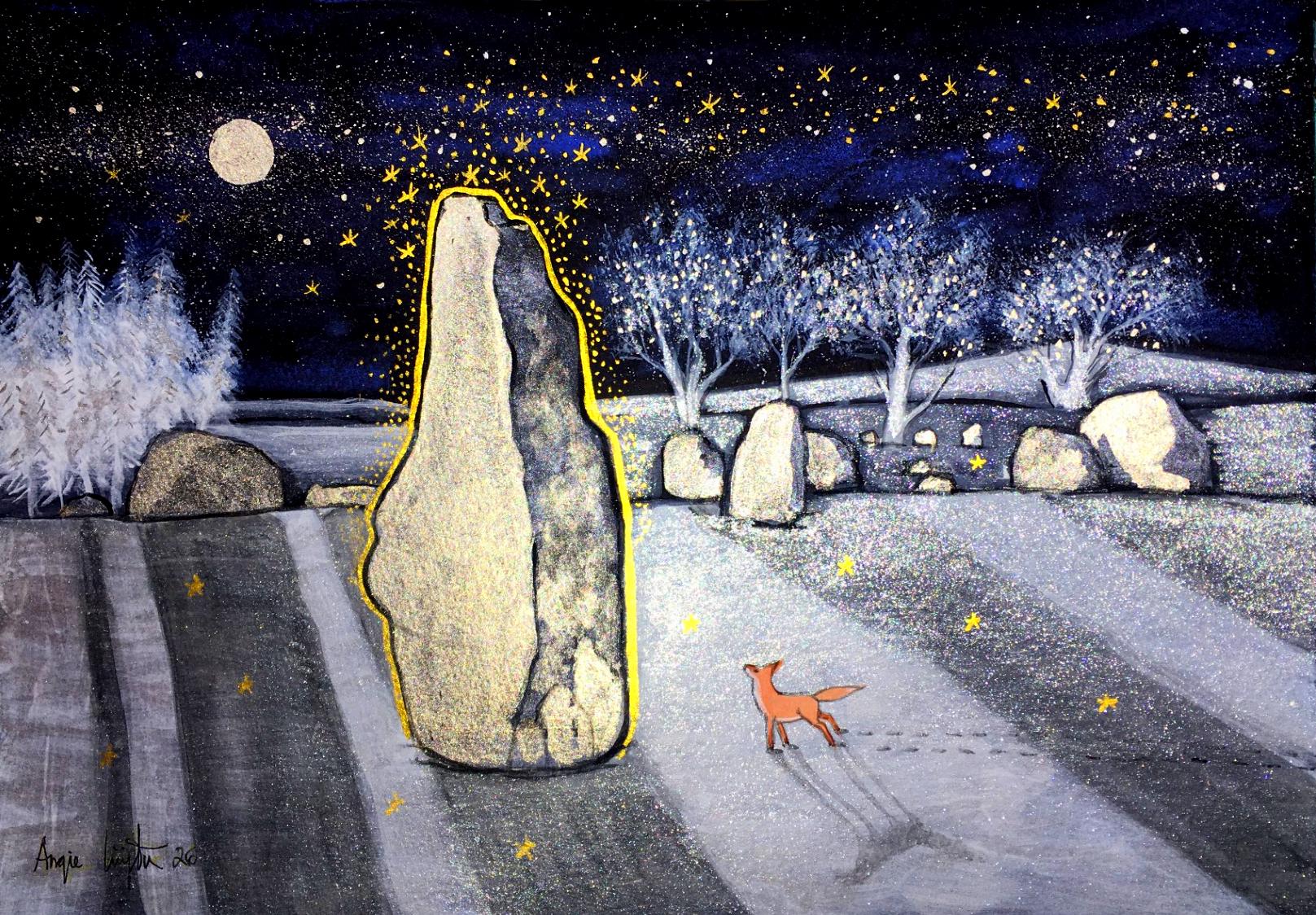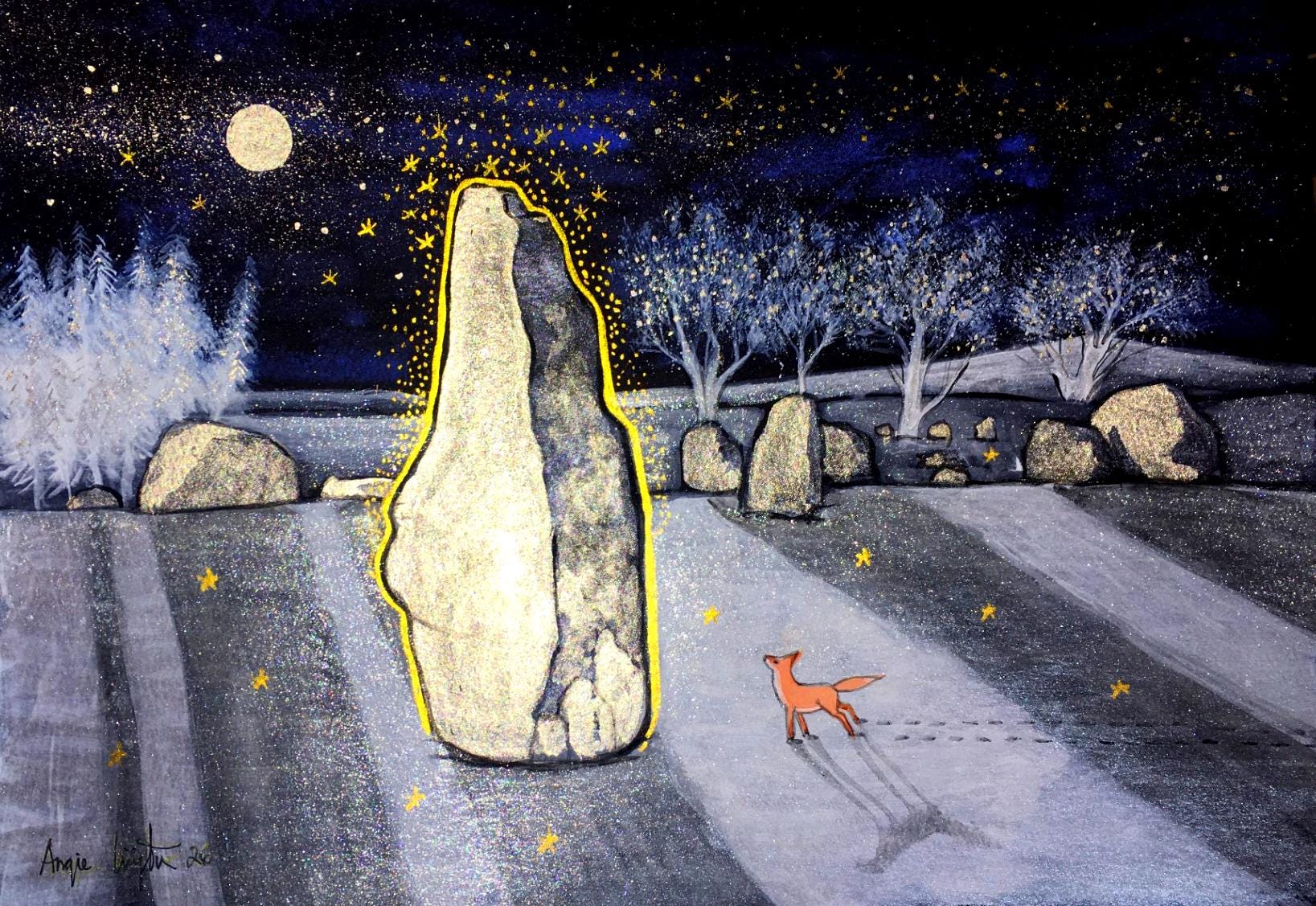 High use of metallics means this painting shimmers and sparkles in changing lights.