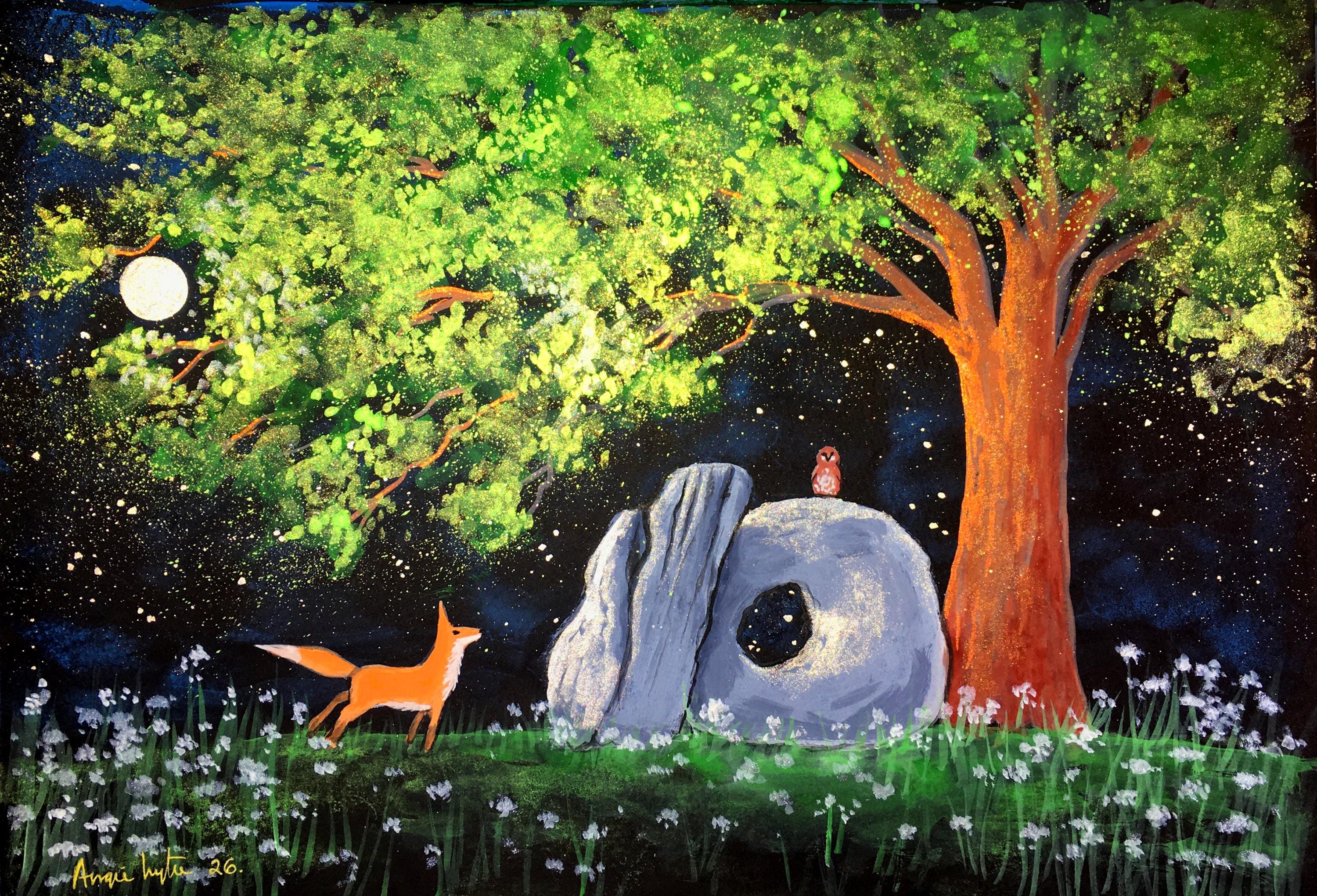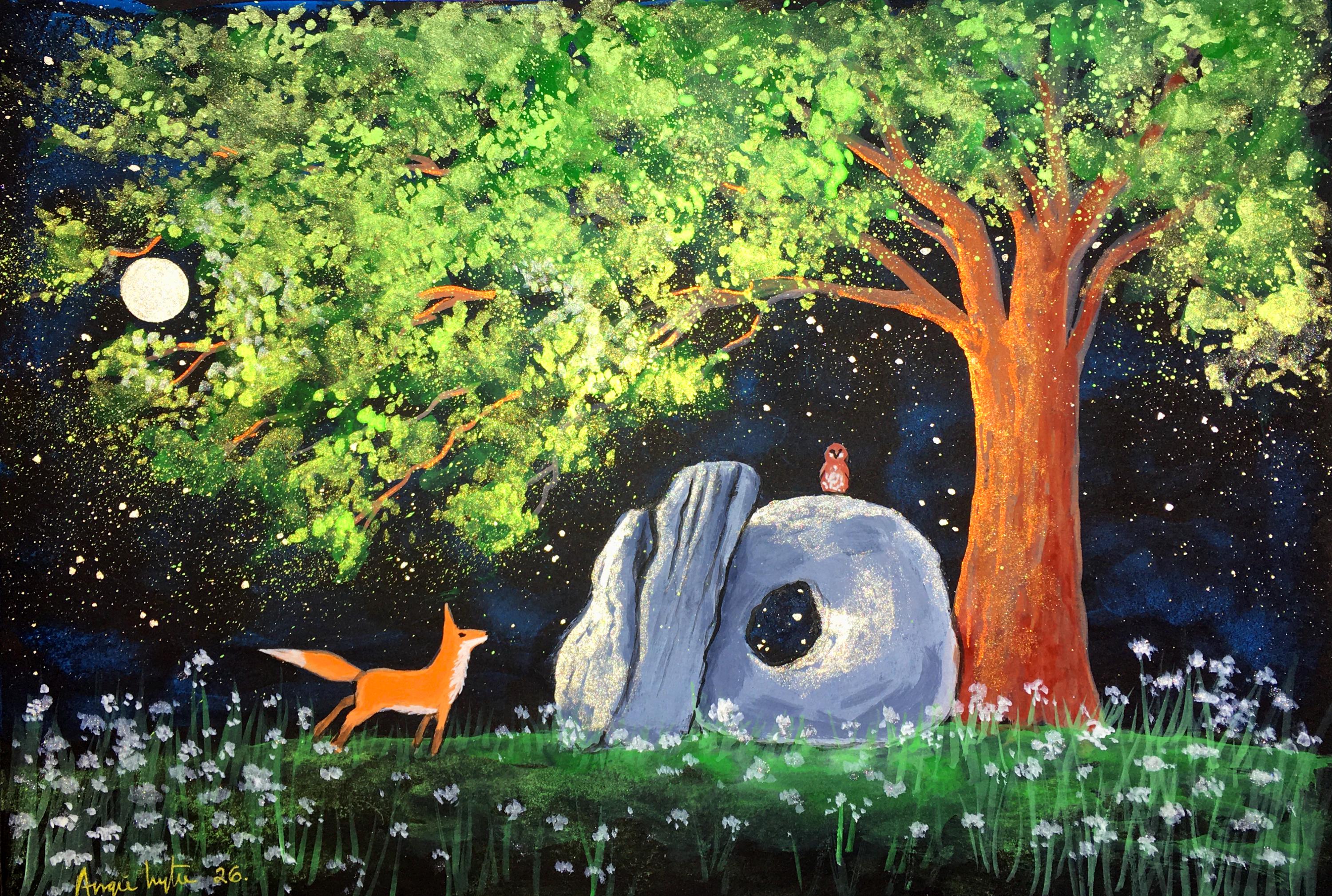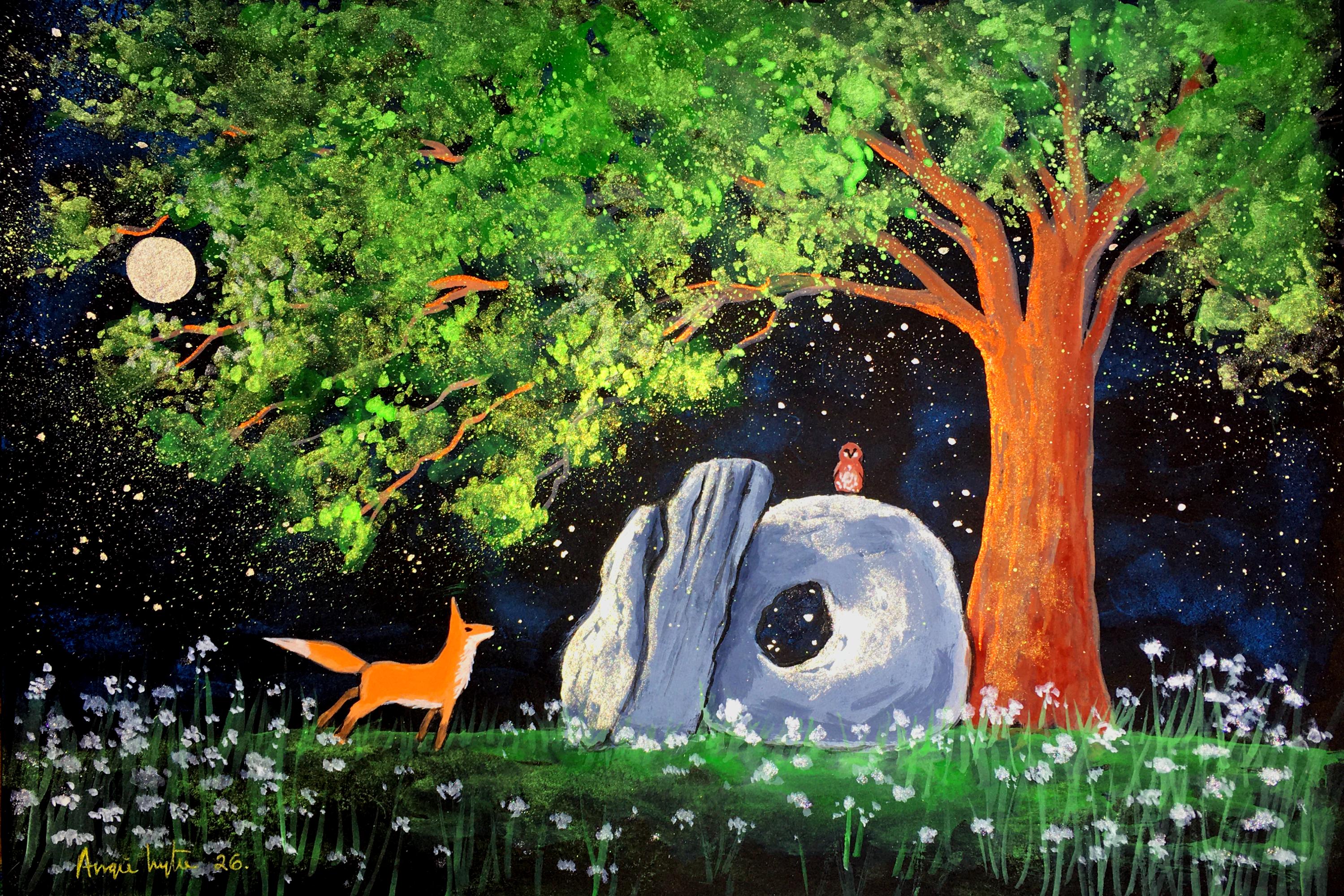 High use of metallics means this painting shimmers and sparkles in changing lights.