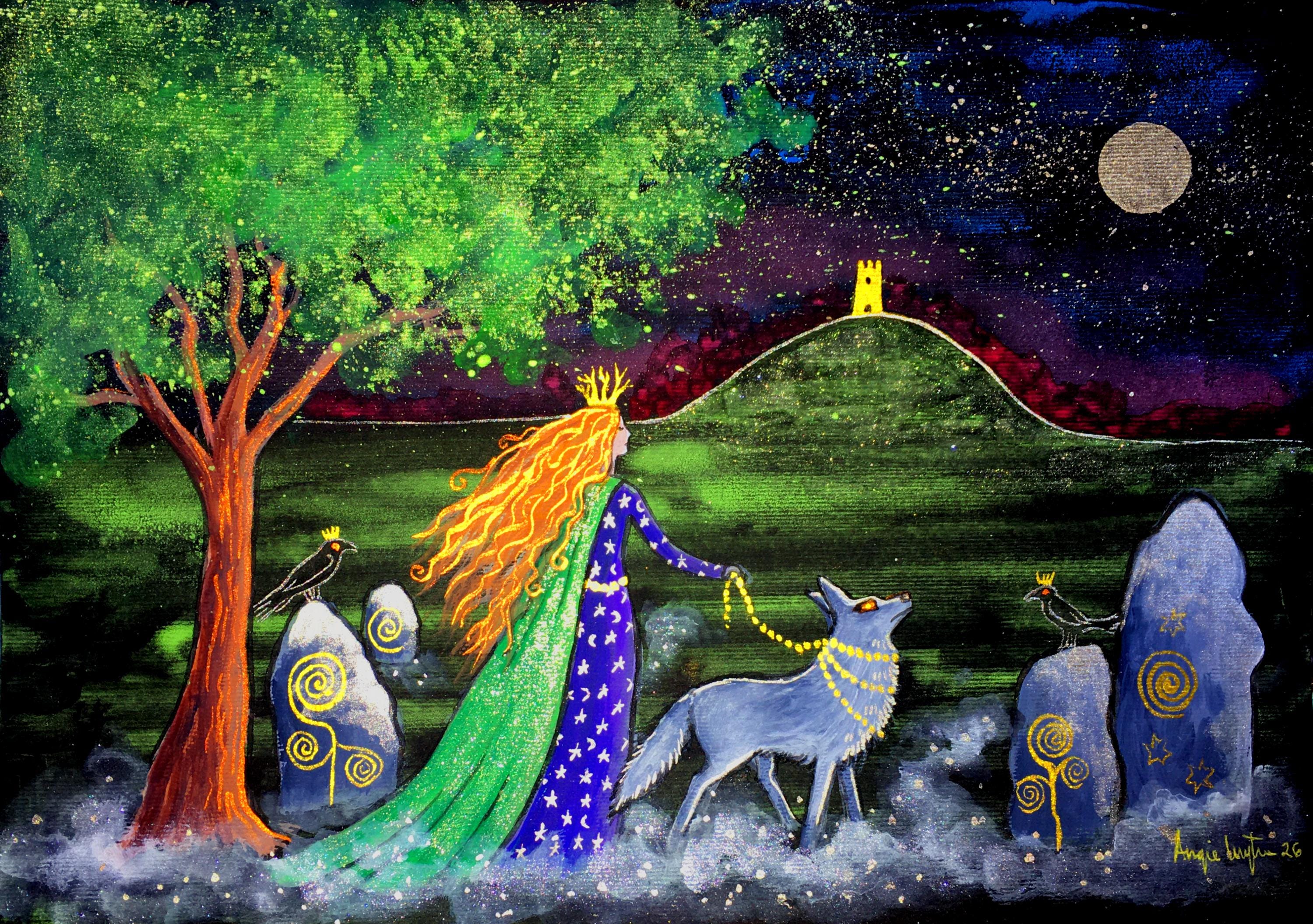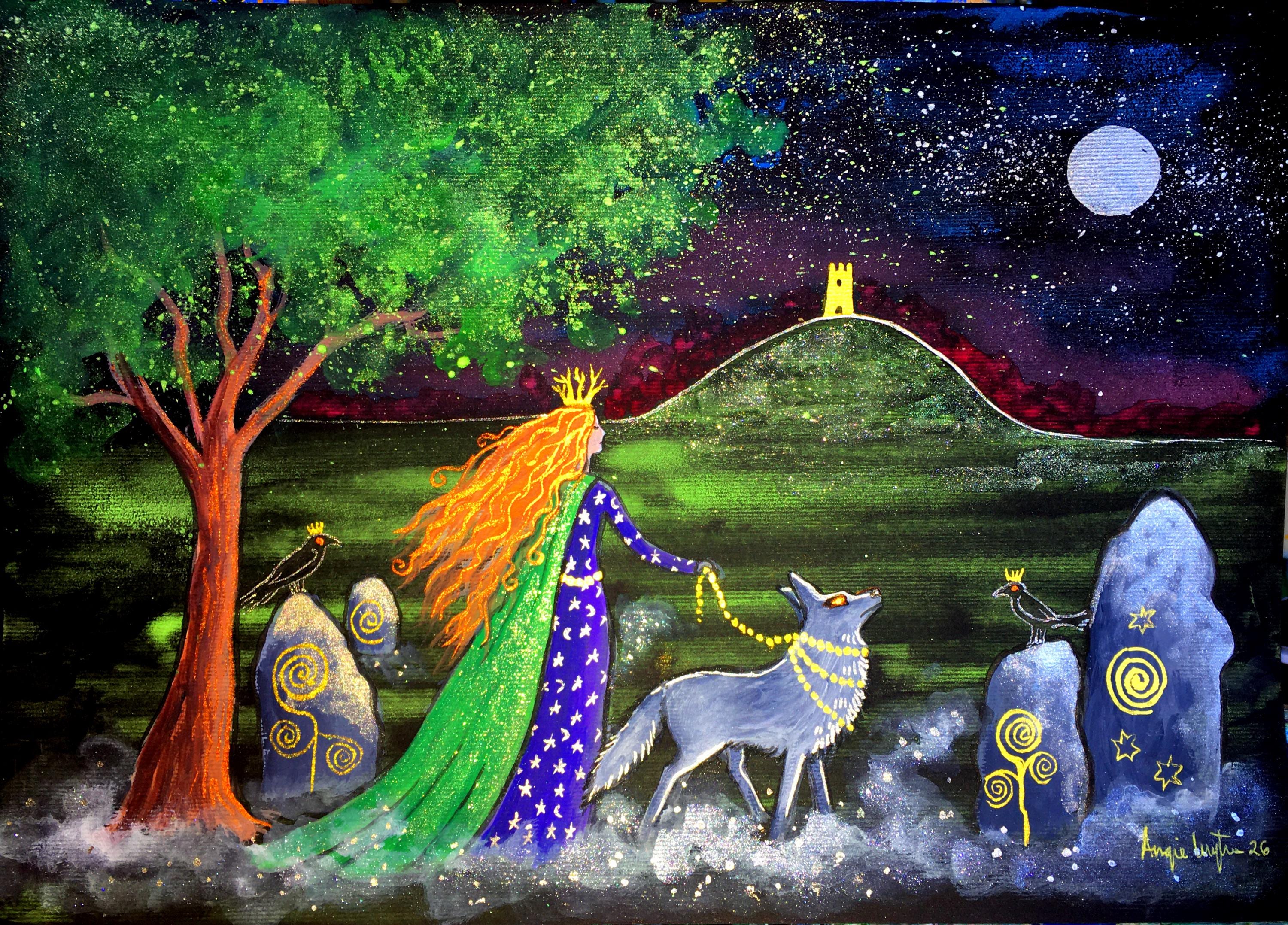 High use of metallics means this painting shimmers and sparkles in changing lights.